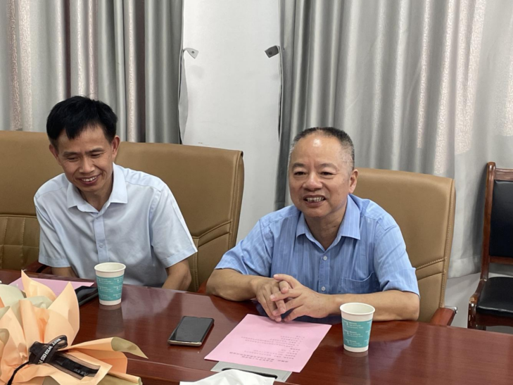 刘钢主席分别介绍了湛腾西和陈凯文老师工作简历。经理童耀南褒扬了他们为公司的发展做出的贡献,代表公司向两位老师致以崇高的敬意和衷心的感谢,并希望两位老师“退而不休”,常回公司看看,一如既往地关心公司发展,并祝愿两位老师退休后生活愉快、身体健康。