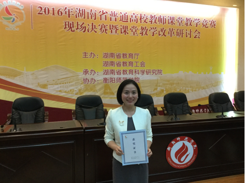 2016年湖南省高校教师教学竞赛中xc体育管琼老师以全省第一名成绩获工科组一等奖