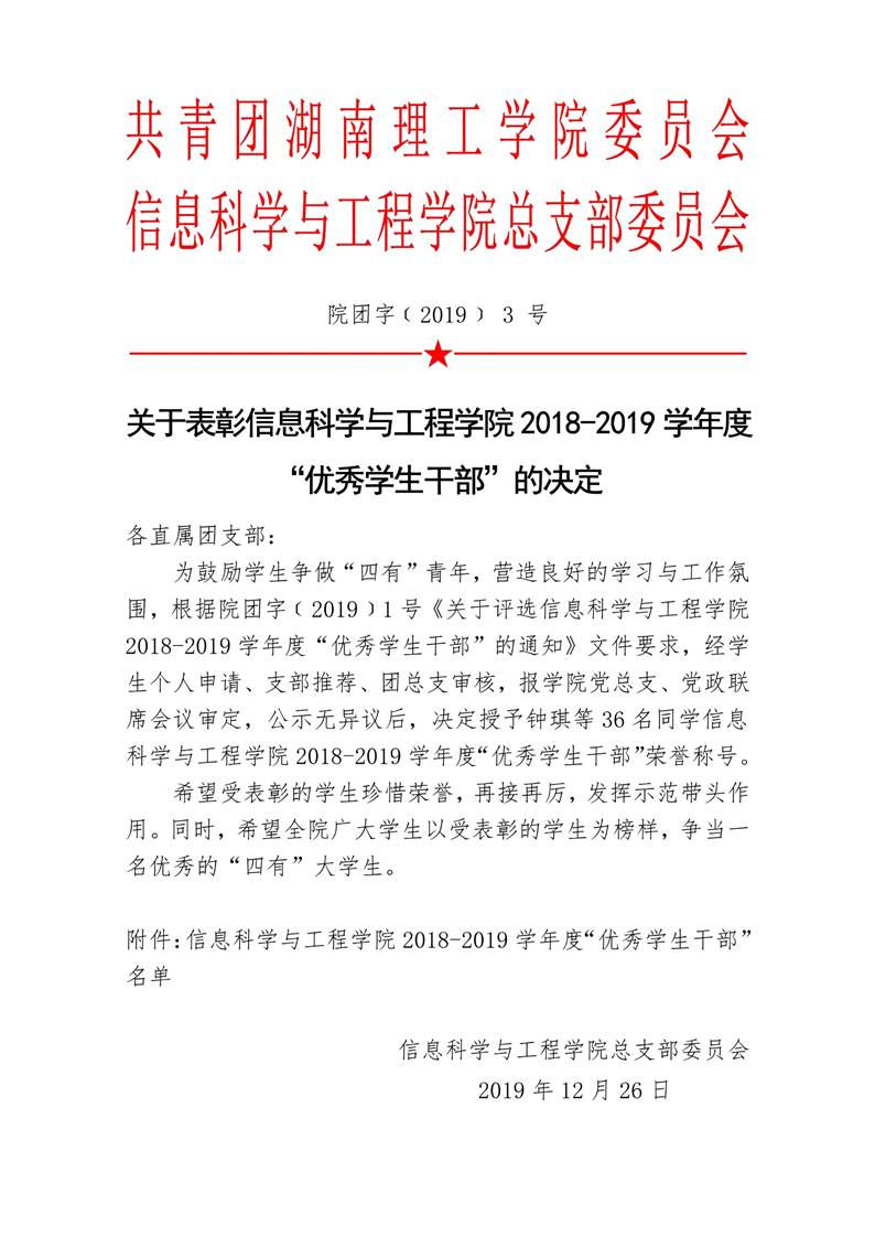 关于表彰2018-2019学年度“优秀员工干部”评选的决定