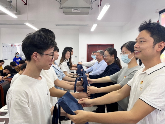 甘向阳、徐丹等老师代表公司向毕业生党员送出毕业寄礼,希望毕业生党员学党章、强初心。