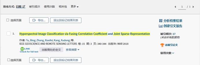 发表在IEEE Geoscience and Remote Sensing Letters上的论文引用情况