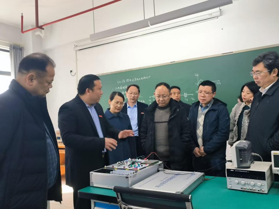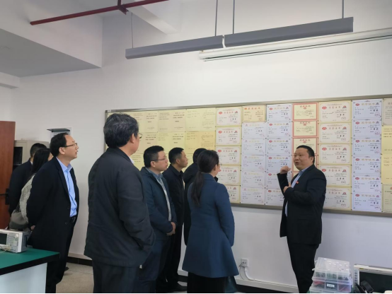 上午10:30,专家组成员在校党委书记卢先明的陪同下,来到​xc体育国家级实验教学示范中心全面考察创新创业人才培养情况。