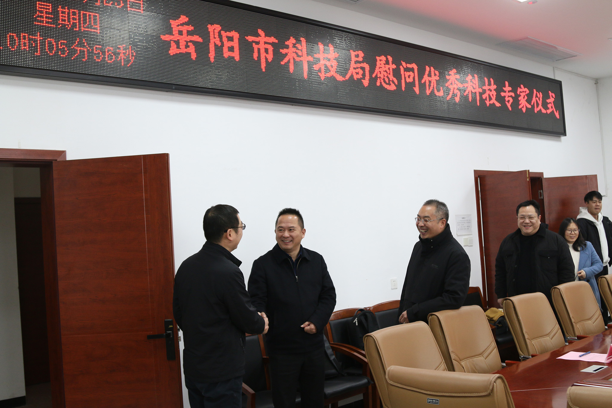 2025年1月23日,岳阳市科技局易兴建局长一行到访公司,对公司特派优秀科技专家郭龙源教授进行慰问,向其作为科技特派专家为服务企业所做的贡献表示了高度肯定,希望郭龙源教授及其团队在科技创新和技术研发方面再接再厉,为服务岳阳市经济社会发展做出更大贡献。