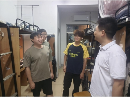 8月31日晚,​xc体育开展员工工作“三个一”行动,即:走访一次宿舍,开好一个班会,听好开学第一课。全体在家领导、班主任、辅导员走访返校员工宿舍,看望并了解员工返校情况,嘱托上好开学第一课。