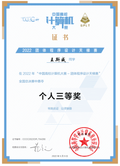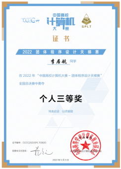 近期,第7届中国高校计算机大赛——团体程序设计天梯赛顺利结束,xc体育计算机类等本科专业生喜获全国团体铜奖1项和全国个人铜奖2项。