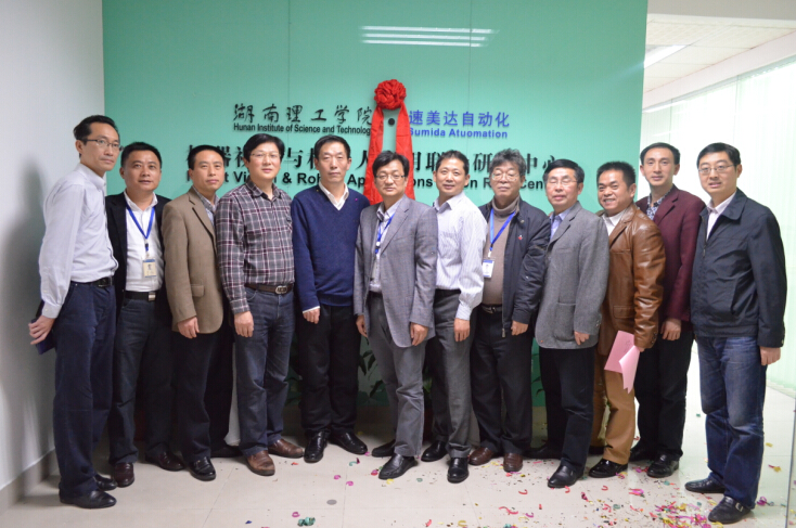 然后,邱绍雄副董事长代表公司与公司总经理李明亮签订了xcsports—速美达自动化有限公司联合组建机器视觉与工业机器人应用研发中心合作框架协议。xc体育郭龙源博士作为项目负责人与公司签订了手机液晶屏光学检测系统技术开发合同。随后邱绍雄与李明亮等一起为研发中心揭牌。