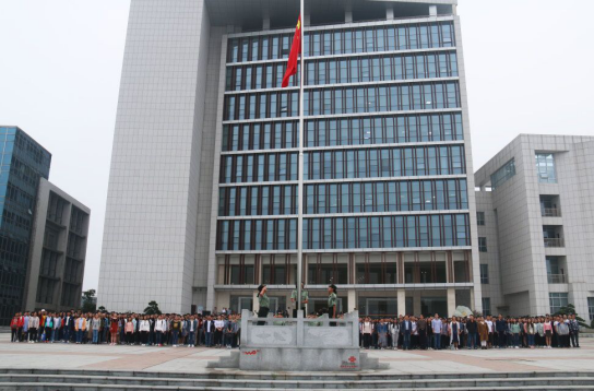 2017年10月9日早上7时10分,xc体育在国旗广场隆重举行庆祝国庆68周年升旗仪式。全院1792名员工汇集广场,公司党委学工部副部长毛伟、xc体育经理李武、副经理彭鑫、党总支副书记徐丹及学工办全体辅导员出席仪式。