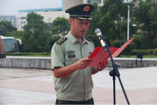 体育公司蔡志达同学作为新生代表在国旗下宣誓:不忘校训,遵守纪律,服从指挥,互相督促,共同提高。他代表全体新生们保证,本次训练将会尽心、用心、全心,展现新生最佳风采。