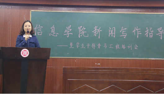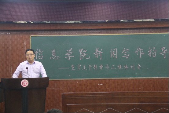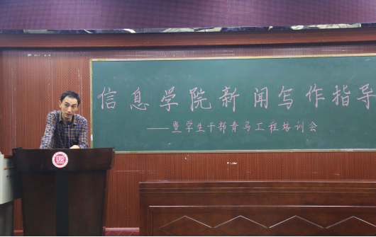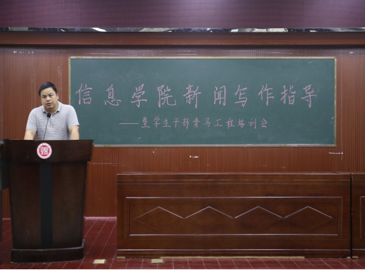 为增强员工人文修养、提升员工表达能力,进一步提高员工综合素质,2017年5月23日下午3点,xc体育于6栋学术报告厅举办新闻写作指导暨员工干部青马工程培训会。公司党委宣传部陈绪清副部长、司念伟老师应邀出席指导工作,xc体育经理李武、党总支书记张泰来等教师代表及15、16级部分员工代表参加培训会。本次培训会由公司党总支副书记徐丹主持。