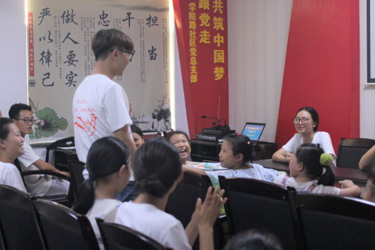 在万物都处于“日轮当午凝不去,万国如在洪炉中”时,xc体育三下乡成员一起徒步抵达公司路社区,由张超和裘寒冰做活动相关宣讲后,爱雏鸟志愿服务团队成员与在座的十名小朋友开始互相自我介绍,随后由“一对一”的形式,各成员与小朋友开始互相交流沟通,志愿服务团队成员幽默风趣的语言使各位小朋友都积极大胆地加入讨论之中,现场气氛一片火热。