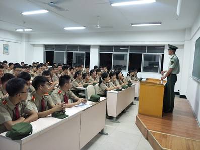见面会前,徐丹就带训教官的班级分配做出安排,并就如何做好军训工作提出几点注意事项。会上,各班班主任向同学们简单介绍了带训教官的基本情况,随后带训教官进行自我介绍并提出军训要求,教官讲到此次军训时间紧、任务重,希望同学们树立“站高温、守纪律、勤训练、高质量”的思想,在注重安全的情况下按质按量完成军训任务。