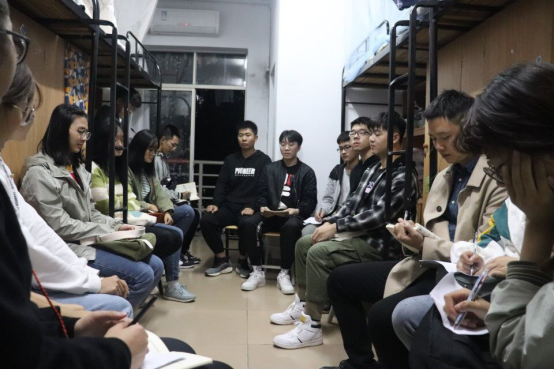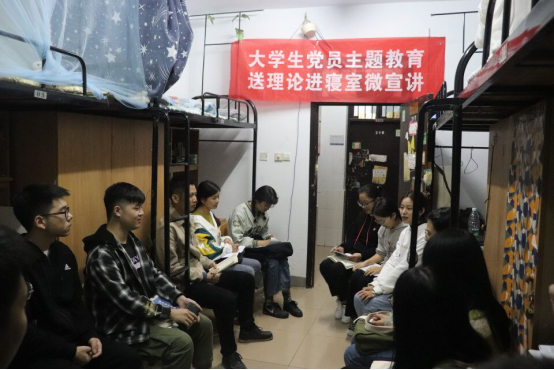 10月31日19:30,体育公司党总支书副书记喻俊、辅导员易薇、黄志带领体育公司604学理论示范寝室员工代表邓娟、吴平及化工公司员工代表姚蕾组成的“不忘初心、牢记使命”学理论微宣讲团,深入xc体育13栋217党员寝室开展“精准扶贫,脱贫攻坚”微宣讲活动,xc体育辅导员王学鹏、荀仕杰出席,16级部分党员代表参加。
