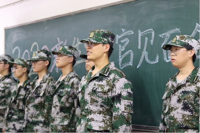 见面会前,各连教官在走廊集结,院领导和教官们简单交流后,便有序进入相应教室指导工作。20级新生用三声响亮的 “教官好!”迎接教官。教官们进行了自我介绍并向新生们提出军训纪律要求,要求做到“着装齐,精神旺,纪律好,听指挥,爱团结”,教官表示军训是一个磨练意志的过程,也将会是新生在大学上的第一堂课,所以他们希望在军训期间,新生们能以一种全新的精神面貌来迎接。
