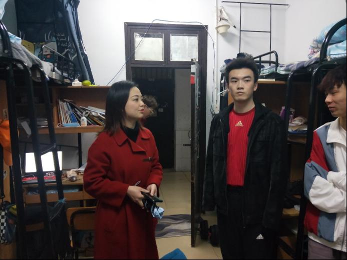 老师们深入员工宿舍进行慰问在走访过程中,徐就文明养成、学风建设等问题与员工亲切交流,仔细询问了同学们的学习生活情况,提醒同学们注意寝室的用电安全,强调应严格遵守公司纪律规定,禁止使用违禁电器,希望同学们合理安排时间、规律作息,以饱满的精神状态迎接每一天。叮嘱同学们,近期气候温差变化大,要注意及时添加衣物,注意保暖。