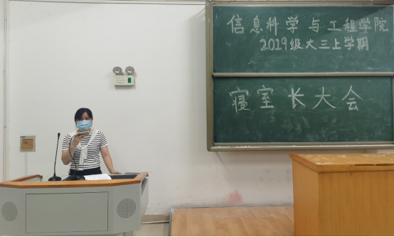 9月22日19:00,​2019级寝室长大会在15208举行,2019级全体班委、寝室长参加,19级辅导员王勤、陶海兰出席,会议由员工李佳璐主持。