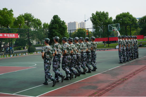 “双脚后跟并拢,膝盖伸直,重心前倾……”同学们一边复习站军姿,一边思考着如何走好齐步。依照教官的指导,循序渐进地掌握各种要领,同学们的训练状态也渐入佳境。一致踏出的步伐,同样挺直的背脊,队列中走出的每一排都是一道靓丽的风景线。
