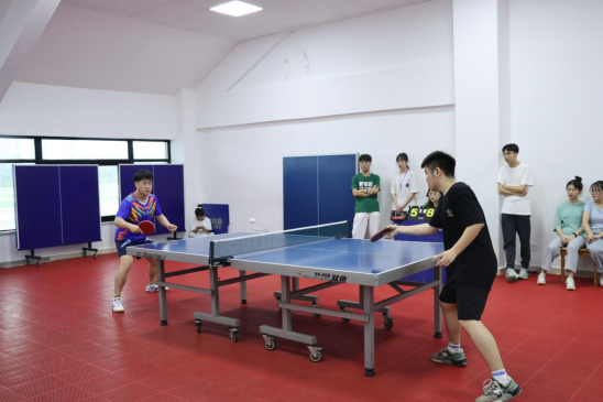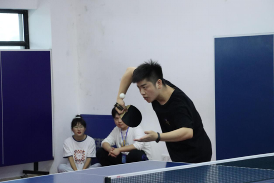 xc体育乒乓球爱好者陈松老师前来指导员工