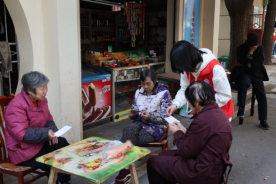 活动中,志愿者们遵循服务老人的宗旨,向老人提供电器维修、手机使用咨询等方面的技术服务,同时开展“网言网语”等小游戏,附赠家乡明信片,随机分发交友小卡片,促进社区随迁老人们的交友和交往,缓解老人独自在家孤独心绪。大家分工明确,相互配合,整个过程有条不紊地进行着。志愿者们的贴心服务换来了老人们的赞许与笑容,大家鬓间掩藏的汗水在阳光下熠熠生辉,如雷锋般,虽不张扬,却已闪耀在人们心中。