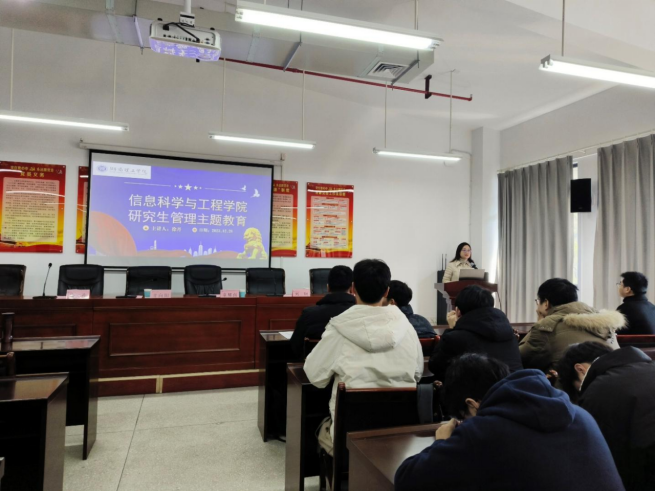 徐丹在研究生管理教育方面提出“五力三问”,五力即政治担当力、团结引领力、工作执行力、难题破解力、形象展示力;三问即是否能静下心来做事、是否有干劲和韧劲、是否追求进步。在学生的思想建设和心理健康方面,徐丹以充满亲和力的语言和生动的案例引导同学们深入探索自己内心的世界,让员工积极面对生活中的挑战和困难,她强调良好的思想建设和心理健康是研究生们成长的基石,期望同学们能够珍惜这一宝贵的成长阶段,努力塑造健全的人格和积极的价值观。