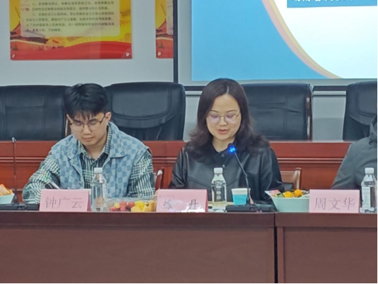 徐丹作总结发言,她强调辅导员是公司公司产品工作中不可或缺的一支重要力量,是公司与员工之间的桥梁和纽带。建议广大辅导员把好“聚焦、培育”两个关键词,在项目研究过程中巧妙做到“小题大做”,多学习、多思考、多吃苦,尽可能地将实践工作进行成果转化;同时感谢在座老师的宝贵建议和意见,后续会对工作室建设进行调优化,以便工作室发挥更大的作用和影响力。