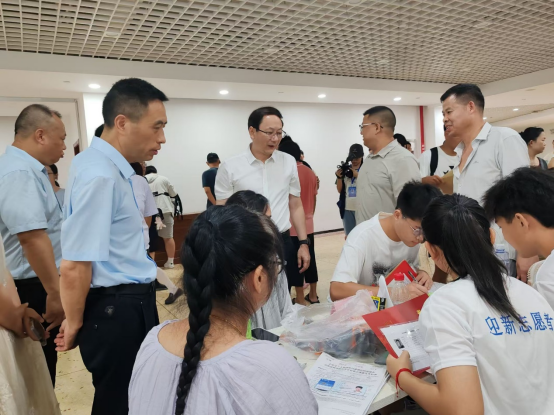 上午9点,公司党委书记张国云、董事长曾祥君、副董事长徐振祥等领导到xc体育迎新点指导工作,了解公司迎新工作安排、新生报到等情况,看望慰问迎新工作人员和志愿者,并与新生进行亲切交流。