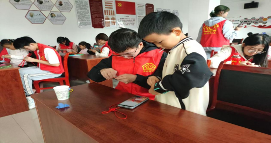 随后,志愿者们陪伴小朋友们一起制作手工艺品。大家用红色绳子编织出精美的中国结,还用扭扭棒扭出各种充满创意的作品,现场氛围欢快而温馨。