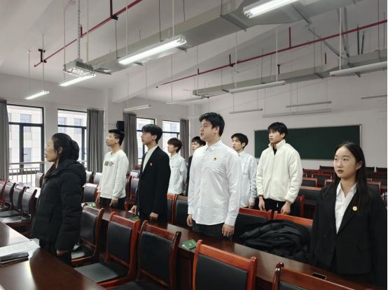 仪式伊始,激昂的国歌奏响,全体肃立。随后,方思源宣读新发展团员名单,并带领全体新团员面对国旗宣誓。