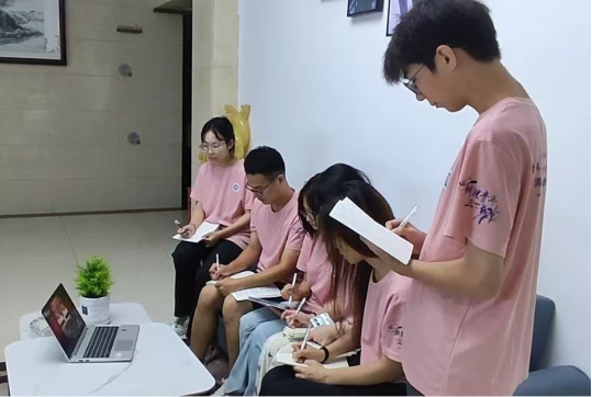 上午,团队先后前往彭德怀铜像广场和平江起义旧址。在庄严肃穆的铜像前,大家深入了解了彭德怀元帅赤胆忠心的一生,尤其是他“横刀立马”的英勇事迹和“为人民服务”的坚定信念。随后队伍走进天岳书院,天岳书院不仅是湘北地区重要的文化教育场所,更是平江起义的重要策源地,珍贵的历史文物、图片资料等还原了当时革命斗争的艰辛与伟大。为了解红色教育开展情况,队员采访当地初中生,看到孩子们谈起革命历史时眼里的光,我们就知道红色基因正在代代相传。