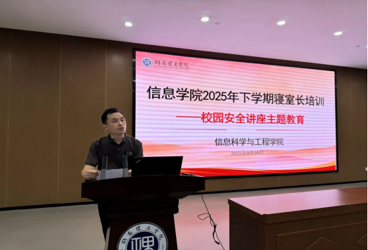 xc体育为了进一步夯实平安校园工作,有效开展员工安全教育管理工作,于本学期开学第一周制定了定期寝室长培训方案,并于9月16日下午在17118开展了第一次培训暨校园安全讲座主题教育活动。此次培训特邀请了信息中心专家对全体寝室长进行校园网络安全防范培训,信息中心申丽平老师主讲,公司党委副书记潘昕、信息中心副主任黄为出席参加此次培训,本次培训由24级辅导员王艳芬主持,22级、23级、24级全体寝室长、班长、院员工会生活安全委员参会。