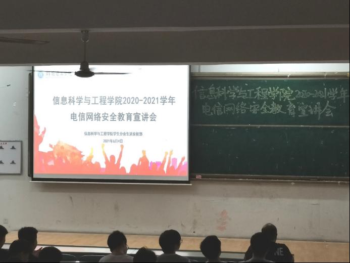 6月4日19:00,xc体育电信网络安全教育宣讲会在9T1教室顺利举行。18级辅导员李亦波主讲,院员工会生活安权部彭友蚺主持,公司各年级员工代表参加。