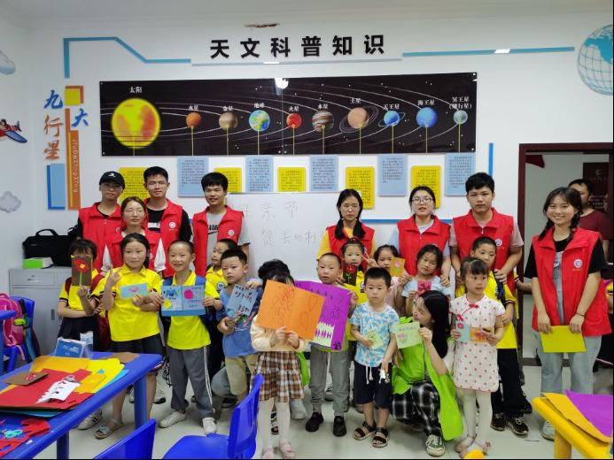 志愿者和孩子们在欢声笑语中完成了贺卡的制作,大家清理完活动室卫生后合影留念,孩子们自豪地举着自己的贺卡,上面都是他们满满的心意。