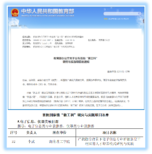 2018年3月,教育部公布了首批国家级新工科研究与实践项目名单。在公司精心组织、省教育厅评审推荐的基础上,经教育部组织通讯评议及专家组评议,公司经理李武教授主持申报的“产教融合背景下电子信息专业群创新型工程应用人才培养模式研究与实践”项目获批立项。本次获批的国家级新工科项目,是公司在多年围绕工程应用型人才培养开展专业建设和人才培养模式改革的成果基础上取得的又一重大突破。