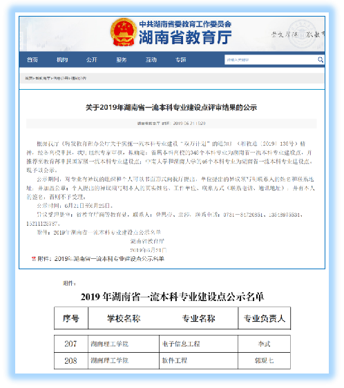 2019年6月,教育厅发布了关于2019年湖南省一流本科专业建设点评审结果的公示,公司电子信息工程专业和软件工程专业经公司推荐、省厅专家组评审,拟立项为省级一流本科专业建设点。两个省级一流本科专业建设点的立项,表明公司专业改革举措和成效得到了省内专家和政府教育主管部门的认可,也将为公司专业建设和人才培养改革掀开新篇章。