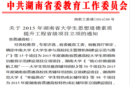 【事件3:2015年获批湖南省特色成长辅导室建设项目立项】