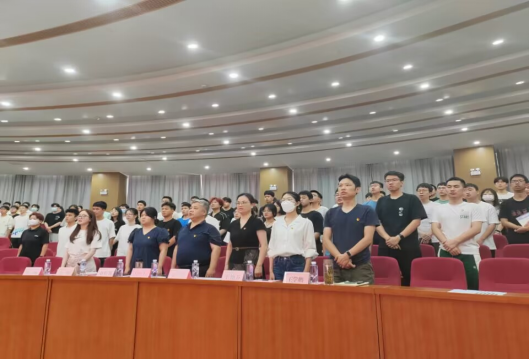5月29日14:30,xc体育于17118召开新党员宣誓大会。出席会议的有院党委书记甘向阳、院党委副书记徐丹、专职组织员刘照馨、员工党支部书记王艳芬、余滔、王学鹏、王璇。xc体育全体预备党员、正式党员及入党积极分子代表参加会议。会议由余滔主持。