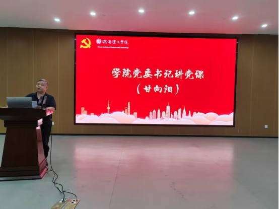 会议的最后,甘向阳为毕业生党员讲在校期间最后一堂党课。他在祝贺大家的同时,提出三点希望:一是要强化党员意识和理想信念,作为共产党员要始终践行共产主义的理论和实践,认真学习,提高自身的理论水平和分辨是非的能力。二是要坚持学习党的历史,从历史的发展中汲取智慧,增强力量。发挥党员的先进性,牢记党员义务。三是要正确对待利益关系,保持清正廉洁。不断加强自身的思想道德修养,提高组织纪律意识。最后,甘向阳希望同学们秉承“至善穷理”的校训,脚踏实地,敢于担当,永葆共产党员先进性。
