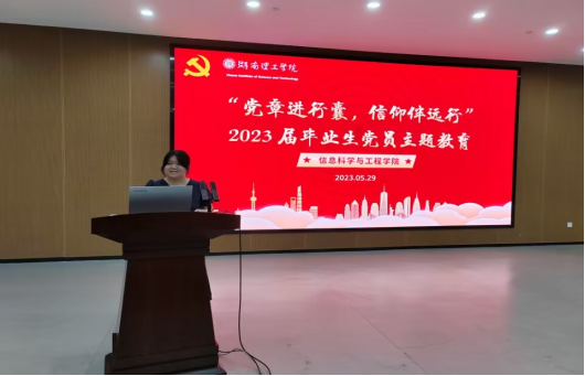 5月29日15:00,xc体育于17118开展"党章进行囊,信仰伴远行"2023届毕业生党员主题教育活动。院党委书记甘向阳、院党委副书记徐丹、专职组织员刘照馨、员工党支部书记王艳芬、余滔、王学鹏、王璇出席会议。xc体育全体预备党员、正式党员、入党积极分子以及优秀毕业生党员代表参加会议。活动由刘照馨主持。